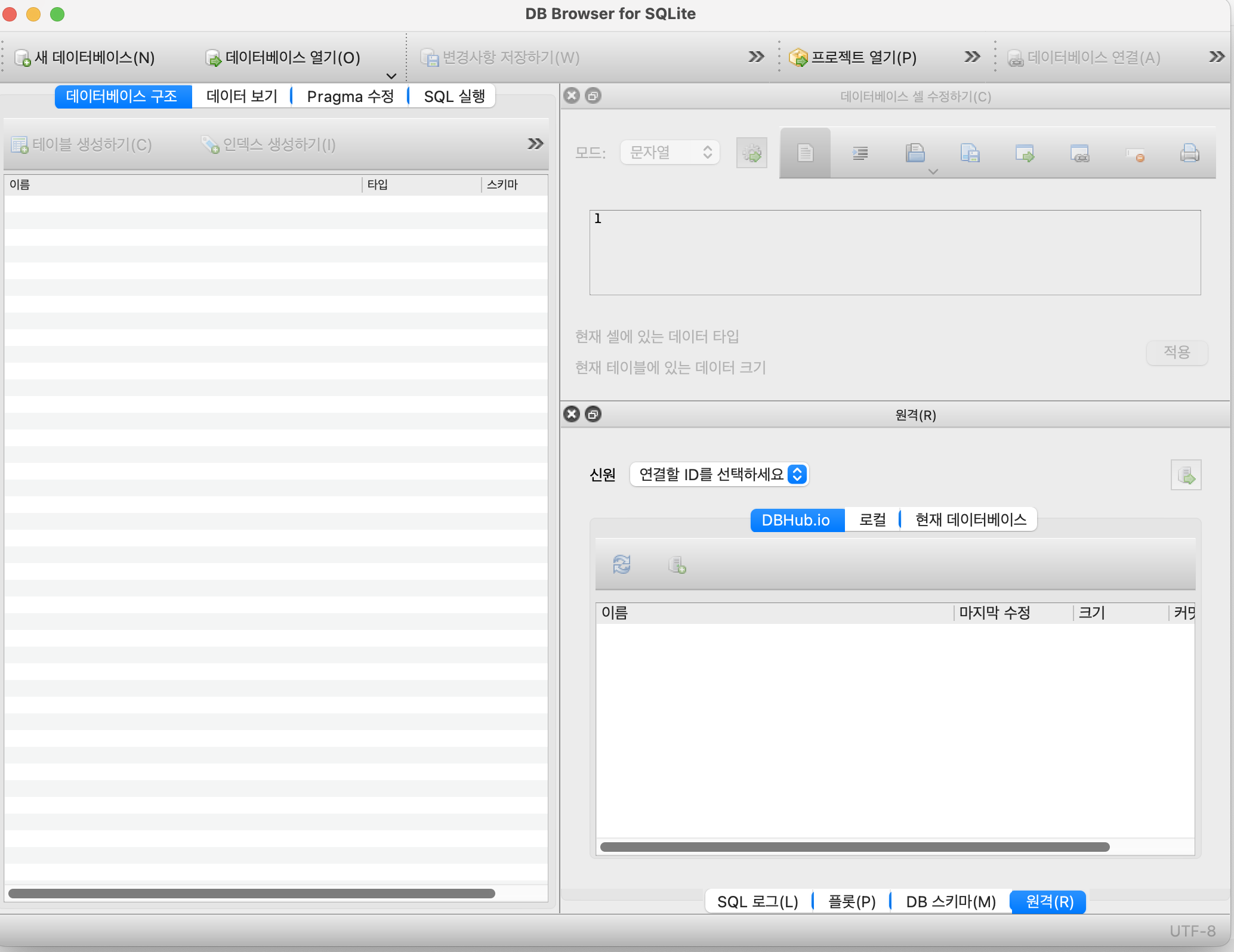 설치가 완료되면 아래와 같이 SQLite Browser가 열리는 것을 확인할 수 있습니다.